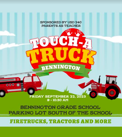 USD 240 Parents As Teachers will be hosting a Touch-A-Truck event in Bennington on Friday, September 22 from 9:00 am - 10:30 am in the Bennington Grade School parking lot south of the school. Come see the firetrucks, tractors and more!
